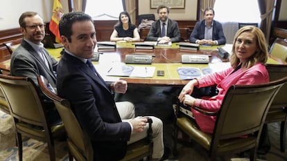 El secretario general de los populares, Teodoro García Egea, que asistió a la reunión con Vox acompañado del vicesecretario de Organización, Javier Maroto, y la diputada navarra Ana Beltrán, los definió como “los Gobiernos de la libertad” —con Cs— para contraponerlos a los llamados “Ayuntamientos del cambio” que surgieron en 2015 de los acuerdos postelectorales entre formaciones de izquierda. Tras asegurar que durante el encuentro habían “comprobado” que existían municipios donde ambos partidos sumaban por sí solos para gobernar — “hemos visto por encima la lista”, dijo— el número dos del PP aseguró que habían “avanzado a la hora de conformar ese tipo de Gobiernos”, aunque los populares no cierran la puerta a Ciudadanos. Tampoco Vox, aunque exige, para llegar a acuerdos, que el partido de Albert Rivera se siente con ellos.