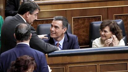 El socialista podría lograr la investidura con la abstención de los cuatro diputados de Bildu, un escenario que horroriza a La Moncloa, o con la abstención de ERC o JxCat, algo que también están intentando evitar los estrategas de Sánchez. Por eso insisten en presionar a Ciudadanos y PP para que se abstengan y eviten que el Gobierno dependa de un voto independentista. Sánchez ha dejado pasar el tiempo para que suba la presión social y mediática, pero algunos en el PSOE y Unidas Podemos empiezan a temer el riesgo de estirar demasiado esa cuerda. Ana Oramas, la portavoz de Coalición Canaria, planteó un escenario del que solo se habla con discreción en círculos políticos: podría haber una investidura fallida, como en 2016, que lanzara toda la presión sobre PP y Ciudadanos en una segunda ronda, después del verano. En 2016 esa estrategia acabó con la abstención del PSOE y la destitución de Pedro Sánchez y su “no es no”.