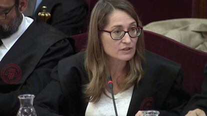 Las defensas de la expresidenta del Parlament Carme Forcadell y del presidente de Òmnium Jordi Cuixart han acusado este miércoles a la Fiscalía de “tergiversar” los hechos para que sus conductas durante el procés encajen en el delito de rebelión. Las abogadas Olga Arderiu (Forcadell) y Marina Roig (Cuixart) han lanzado un duro alegato contra las conclusiones finales presentadas la semana pasada por el ministerio público, que solicita para ambos una pena de 17 años de cárcel al considerarlo promotores de la rebelión. Sus estrategias de defensa han seguido líneas diferentes, pero ambas coinciden en reprochar a la Fiscalía que haya forzado los hechos para sentar en el banquillo a sus clientes. “Aquí se trata de exagerar o magnificar en todo momento la conducta de la señora Forcadell”, ha sostenido Arderiu, que considera que a la expresidenta del Parlament no se le juzga por lo que ha hecho sino por quién es.