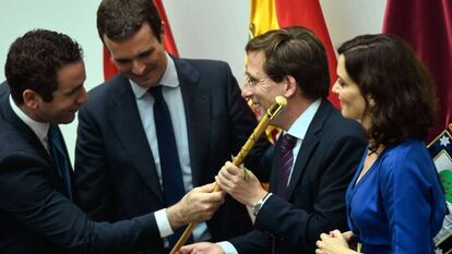 Por eso estuvo bien que a esa España se asomasen en el acto de investidura del Ayuntamiento como espectadores aquellos que representan al PP de Madrid de siempre, desde Álvarez del Manzano hasta Gallardón, pasando por la eterna Ana Botella; ellos asociaron el PP a Madrid con el mismo énfasis que los españoles asociaron Madrid a una derecha irremediable, inherente a su espíritu, la capital entregada a una forma de ser y de gobernar. Un rodillo no solo político sino moral. ¿Y este PP, el PP de ayer, el de Martínez-Almeida y Ayuso, los nuevos líderes del ejército viejo? Ha viajado del autoritarismo al entreguismo, un desplazamiento que no se ha llevado muchos principios porque estos ya los había patrimonializado Vox, pero sí ha permitido ver la erosión de cuatro años sin poder, ejemplificados en la sombra recortada de Gallardón proyectándose sobre Martínez-Almeida, que no se vio en otra.
