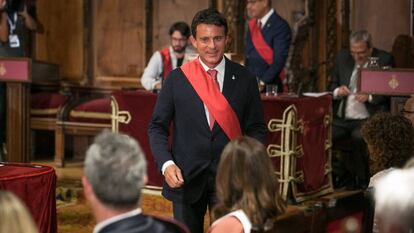 El ex primer ministro francés anunció el 29 de mayo que su grupo votaría “sin condiciones” a favor de Ada Colau como alcaldesa. Cs reaccionó emitiendo un comunicado en el que se desmarcaba de su candidato. El 15 de junio se materializó la investidura de Colau gracias al voto de Valls. Fue el punto final de un tormentoso experimento político. /CRISTIAN SEGURA