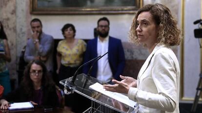 La presidenta de las Cortes aprovechó su comparecencia, tras la conversación con Sánchez, para adelantar que tiene la voluntad de constituir la Diputación Permanente del Congreso —que es el órgano de gobierno de la Cámara en estos periodos vacacionales— justo inmediatamente después de la primera votación en el primer pleno de investidura, es decir, a partir del 23 de julio. Y ha subrayado que la Cámara ya ha empezado a controlar al Gobierno al haberse admitido a trámite algunas preguntas escritas planteadas por la oposición.