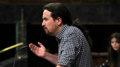 El líder de Unidas Podemos aleja en su intervención el acuerdo con el PSOE para la investidura