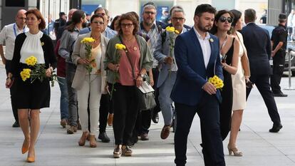 Los diputados de Esquerra llevan flores amarillas al pleno de investidura