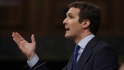 El primero que rescató la alegoría del elefante fue Pablo Casado para apuntalar el mensaje de que estaba en una sala anexa, atado con un lazo amarillo, esperando para explicitar el gobierno de coalición nonato del PSOE con Podemos, los partidos separatistas catalanes y los que llama proetarras de Bildu. Y volvió a dar por hecho que un Sánchez presidente concedería a cambio, “por debajo de la mesa”, los indultos a los líderes secesionistas juzgados por el Tribunal Supremo, aún a la espera de sentencia. Casado aludió a la metamorfosis de Pedro Sánchez de “crisálida a mariposa” para reprocharle que les exija la abstención como una obligación cuando él, hace tres años, ligó todo su futuro político a aquella máxima contra Rajoy: “No es no”.