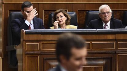 No obstante, Casado ha querido ponerse el traje institucional y adoptar un nuevo tono, más moderado, para diferenciarse de la agresividad de Albert Rivera y también del “no es no” de Sánchez de 2016, por ejemplo acudiendo a todas las reuniones a las que le convoca. Por eso tanto el presidente popular como otros dirigentes del partido aseguran que están dispuestos a “tender la mano” a Sánchez a la hora de suscribir pactos de Estado (sobre justicia, pensiones, infraestructuras, defensa o lucha contra la violencia machista) y por eso le animan a cambiar de aliados y “ampliar el espacio de la moderación” para revitalizar el bipartidismo. “Ofrecemos también estabilidad si los Presupuestos no incluyen subida de impuestos, amortizan deuda y cumplen con el déficit, y aplicar la ley en Cataluña, un pacto por el agua, otro educativo y el estudio de la ley electoral para evitar bloqueos”, enumeró ayer Casado.