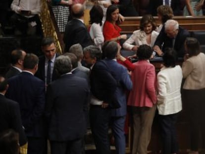 La situación vuelve pues al bloqueo en el que estaba desde las elecciones del 28 de abril, aunque ahora ya solo queda una oportunidad antes de que el 23 de septiembre se convoquen automáticamente nuevos comicios. El Gobierno insiste en que su prioridad es lograr una investidura, y no la repetición de elecciones. Pero responsabiliza a la oposición del bloqueo. El presidente tiene previsto, en teoría, iniciar una nueva ronda de consultas con los líderes de los tres principales partidos además del PSOE, PP, Ciudadanos y Podemos, pero de momento no le ha puesto fecha a esos encuentros y el jueves empieza ya el mes de agosto, tradicionalmente de parón casi total en el calendario político. Sánchez mantiene su agenda internacional, sobre todo europea —en funciones no puede hacer grandes viajes por iniciativa propia—, y el miércoles recibirá en Madrid a la nueva presidenta electa de la Comisión Europea, la alemana Ursula von der Leyen. Pero de momento no hay fecha para la ronda con los líderes y en especial con Iglesias, de momento el único aliado posible para la investidura puesto que tanto PP como Ciudadanos insisten en que ellos no se abstendrán en ningún caso para facilitar la elección de Sánchez. La situación en Navarra, donde está a punto de ser elegida la socialista María Chivite y por tanto Navarra Suma pasará a la oposición, refuerza a los que tanto en el PP como en Ciudadanos señalan que no tiene sentido la abstención.