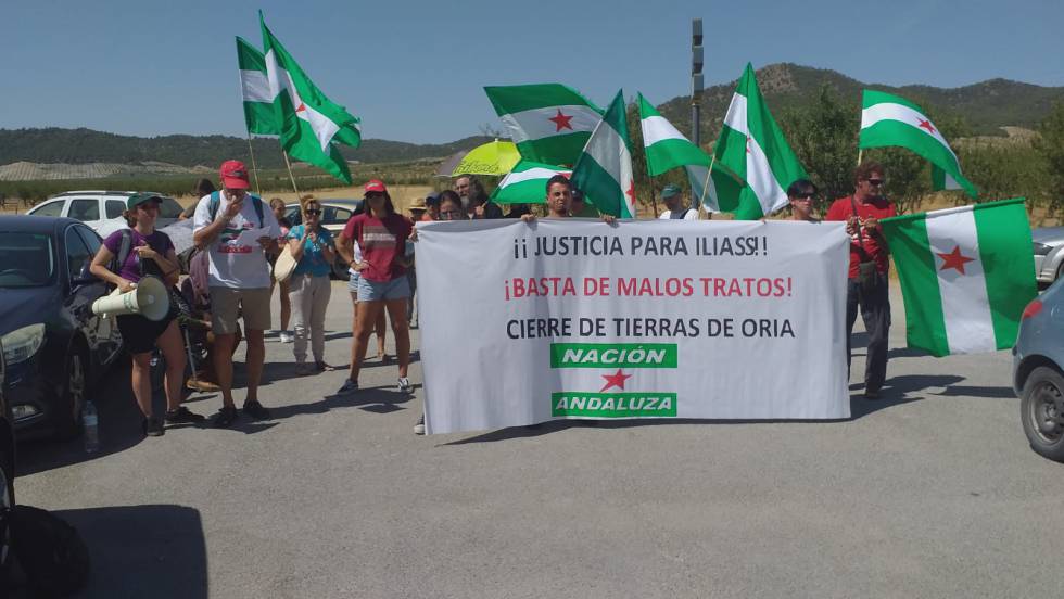 “No son muertes, son asesinatos”. Esta fue la consigna más coreada por la veintena de personas concentradas a las puertas del Centro de Menores Tierras de Oria en protesta por el fallecimiento el pasado 1 de julio de Ilias Tahiri, uno de sus internos. Familiares de algunos de ellos, educadores sociales de otros centros y representantes de las organizaciones convocantes, Nación Andaluza y CNT, acudieron para exigir, según se recogía en un comunicado, “responsabilidades penales y políticas a los culpables de la violenta muerte”, así como reclamar “que se aclaren las circunstancias del suceso”.
