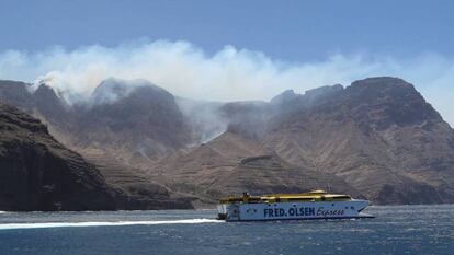 Desde la costa, por la carretera que llega a Agaete, se avistan varias columnas de humo que se alzan al cielo por las escarpadas laderas de las montañas que rodean a este municipio grancanario. "Allí hay mucha gente jugándose la vida para apagar el fuego", sentencia Mari Nieves Bolaños, de 67 años, mientras le da un pequeño sorbo al chocolate que sujeta en el polideportivo del pueblo. Sentada en una silla de plástico, delante de una hilera de 31 colchonetas donde se apilan algunas mantas, esta vecina narra cómo el paso de las horas y los días hacen mella en los afectados por el incendio que asola la isla. "Llevamos aquí desde el domingo. Sin poder volver. Esto es muy triste. Los nervios me comen. A veces estoy bien, pero otras rompo a llorar", cuenta en la tarde de este martes.