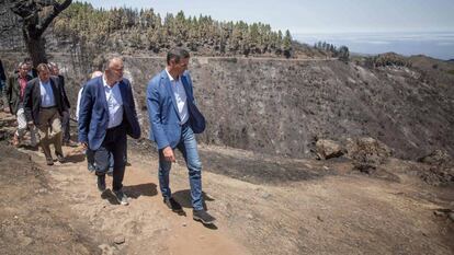 El presidente canario, el socialista Ángel Víctor Torres, ha acompañado a Sánchez y ha hecho un llamamiento a los ciudadanos para que no acudan a la cumbre de la isla hasta que el incendio esté extinguido. Y ante la previsión de un aumento de las temperaturas que ha llevado a Sanidad a activar los avisos rojo y naranja de riesgo para la salud por calor. Torres ha explicado que se están evaluando las hectáreas quemadas y que si bien "no se aprecia humo", las cámaras captan que persiste en algunas zonas, por lo que ha añadido que lo más importante es terminar de “rematar a esta bestia”.