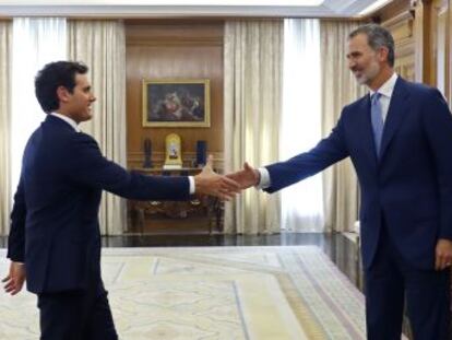 Después de hablar de la victoria de la selección de baloncesto en el Mundial de China y comentar la última serie que ha visto, Iglesias le ha transmitido al Monarca que sus 42 diputados se abstendrían si no logran pactar un Ejecutivo compartido con Sánchez. Su voto sería favorable si hay acuerdo de coalición. Y solo en el caso de que se hubiera dado el pacto Sánchez-Rivera el dirigente reunirá al grupo confederal que lidera en el Congreso y decidirían de manera colectiva, según explicó, cuál sería el sentido de su voto. “Dependerá del contenido de ese acuerdo”, zanjó Iglesias que tampoco aclaró si Podemos, su partido, también lo sometería a una consulta entre sus bases. Un día antes, Yolanda Díaz, líder de Galicia en Común, y persona de máxima confianza de Iglesias, había asegurado que se abstendrían "en cualquier caso", lo que incluía el escenario de pacto entre Ciudadanos (Cs) y PSOE.
