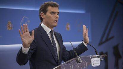 Rivera utilizó su oferta de última hora de una abstención condicionada para presentar a Sánchez como un líder político que prefiere repetir las elecciones porque ha rechazado las opciones que le han planteado su partido y Unidas Podemos. El mensaje en el que va a insistir Ciudadanos —hasta que se disuelvan las Cortes, pero también después, en la campaña— es que el líder socialista “es el problema” de la gobernabilidad en España, porque “fuerza” las elecciones al no querer ningún acuerdo ni con la izquierda ni con la derecha. “Si Sánchez nos lleva a elecciones tirando por la borda una propuesta de los constitucionalistas y de sus socios [por Unidas Podemos], Sánchez es el problema”, afirmó este martes Rivera.