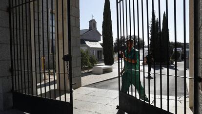 Hace apenas una hora que se conoció la decisión del Tribunal Supremo, que avala exhumar los restos de Franco del Valle de los Caídos. El silencio del lugar, enclavado en medio de la nada y con vistas al monte del Pardo, se rompe entonces por los periodistas que se agolpan en la entrada esperando un permiso para entrar. Dentro, el encargado de mantenimiento del lugar desde hace 25 años, que se presenta como “la única persona que trabaja aquí”, se niega a dar muchos detalles.