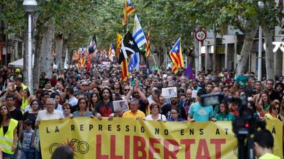 Para el independentismo, la comandancia de la Guardia Civil de Travessera de Gràcia, en Barcelona, es un escenario maldito. El pasado lunes, la operación policial contra los nueve miembros de los autodenominados Comités de Defensa de la República (CDR) que habían creado presuntamente un nuevo grupo terrorista, los Equipos de Respuesta Táctica (ERT), motivó un llamamiento en redes sociales. Casi un millar de personas protestaron frente a lo que consideran símbolo de la represión, con presencia de políticos de Junts per Catalunya, ERC y, por supuesto, la CUP. En un momento dado, los ánimos se caldearon y los cánticos subieron de tono: “Pim pam pum, que no en quedi ni un!”. La violencia fue solo retórica, porque la concentración se disolvió sin incidentes. Este episodio muestra cómo una parte del independentismo —cuyos líderes políticos y sociales han hecho del pacifismo su divisa más valiosa— justifica ya, aunque sea en lo dialéctico, el uso de la fuerza.