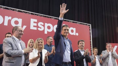 En los dos actos del PSOE Cataluña ha sido una de las cuestiones centrales. Sánchez recordó el voto a favor de los socialistas en el Senado hace dos años con el que el Estado intervino por primera vez a una comunidad autónoma. “Dicen los independentistas que España es un país opresor, poco menos que una dictadura… Bueno, pues este Gobierno va a exhumar a Franco del Valle de los Caídos”, ha enfatizado provocando el clamor de los asistentes al mitin en la capital maña. El aparato del PSOE confía en que la reinhumación de los restos del dictador en El Pardo supondrá un plus de energía que contribuirá a la movilización de un electorado decepcionado con la falta de acuerdo entre las principales formaciones de izquierdas que impidió la formación de Gobierno.