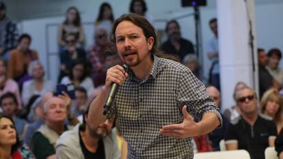 Los mítines de Podemos no son mítines, dicen en el partido. “Son encuentros con la gente”. Actos sin tarima, en círculo, en los que Iglesias se rodea de la militancia para contarles “la verdad”. Es decir, una readaptación del mitin. El de la mañana de este sábado se ha convertido en una especie de clase sobre el último capítulo de la historia de España. Iglesias ha repasado el fracaso de los últimos cinco meses de negociación con el PSOE. “Todo el mundo sabe por qué vamos a elecciones: Sánchez no quería gobernar con nosotros, quería vetar a casi cuatro millones de ciudadanos. Mintió”, ha responsabilizado al presidente en funciones de la celebración de las elecciones generales del 10-N, las cuartas en cuatro años.