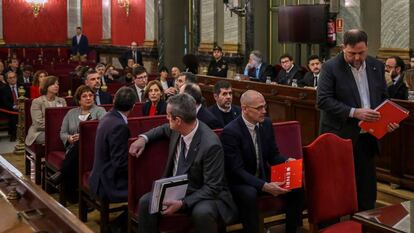 Descartada la rebelión consumada, tal como adelantó el viernes EL PAÍS, la sentencia que el Supremo prevé notificar mañana contempla condenas de sedición para los nueve encarcelados del procés: el exvicepresidente Junqueras, los exconsejeros Jordi Turull, Josep Rull, Joaquim Forn, Raül Romeva y Dolors Bassa; la expresidenta del Parlament Carme Forcadell; y los líderes de la Assemblea Nacional Catalana (ANC) y de Òmnium Jordi Sànchez y Jordi Cuixart, respectivamente. El tribunal que preside Manuel Marchena se acerca así a la calificación jurídica que presentó la Abogacía del Estado. Y entiende que los líderes secesionistas promovieron las movilizaciones tumultuarias que se produjeron en Cataluña en otoño de 2017, pero no instigaron premeditadamente actos violentos como parte de su plan para declarar la independencia. Esa es la línea que separa la sedición de la rebelión.