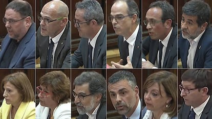 El Tribunal Supremo ha impuesto penas de entre 9 y 13 años de cárcel a los nueve líderes independentistas condenados por sedición en el juicio del procés. Otros tres políticos procesados han sido condenados por desobediencia. Esta es la relación de penas.