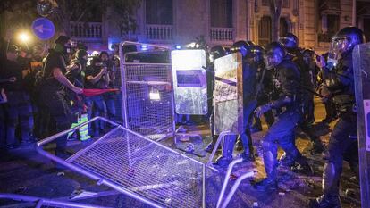 La ANC quería celebrar “sentadas” de dos horas frente a las sedes de las delegaciones y subdelegaciones de Gobierno en Cataluña. Pero algunos manifestantes convirtieron la protesta en una batalla campal prendiendo fuego a barricadas y contenedores y lanzando todo tipo de objetos, piedras, incluso bengalas, contra los Mossos y la Policía, que cargaron juntos y con dureza. Los incidentes han sido especialmente crudos en Barcelona, donde ha tenido lugar la concentración más numerosa con 40.000 personas según la Guardia Urbana. Un total de 125 personas han tenido que ser atendidas por los servicios sanitarios durante las protestas de todo el día.
