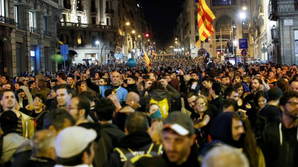 · Una marcha contra el proceso independentista parte a las 12.00 del Passeig de Gràcia · Los CDR convocan una concentración a la misma hora en la plaza Sant Jaume · Tres detenidos y 46 heridos tras los disturbios de la pasada noche