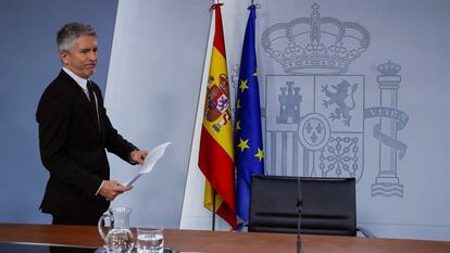 “Nadie puede ni debe ser ambiguo respecto a la violencia”, ha señalado el titular del Interior durante una comparecencia en La Moncloa, tras la nueva reunión que ha mantenido esta mañana el comité de seguimiento que se ha creado en el Gobierno para debatir la situación en Cataluña y que este domingo también ha encabezado el presidente en funciones, Pedro Sánchez. Como conclusión de ese encuentro, Marlaska ha citado varios puntos cuyo cumplimiento exige a todos los demócratas: desmarcarse de la violencia, aislar los comportamientos agresivos y reconocer la labor de los Cuerpos y Fuerzas de Seguridad del Estado. Marlaska ha dedicado una mención especial a Torra para que “condene de manera firme, rotunda, sin matices, adjetivos ni medias tintas, sin equidistancia, la violencia”. Y ha concluido: “Nadie entiende que no lo haya hecho todavía”.