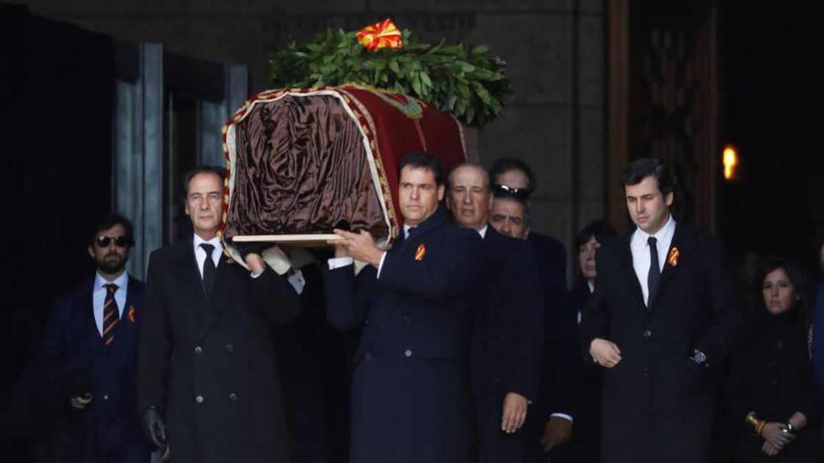 La operación técnica —hacer los agujeros en el suelo, colocar un gato hidráulico, unos rodillos, deslizar la lápida e izar el féretro— fue limpia. El féretro fue trasladado según lo previsto en helicóptero en un día que amaneció claro. Todo iba sobre ruedas. Pero el componente humano enrareció una jornada con tintes históricos, a pesar de que el Gobierno reiteró que quería que transcurriera “con sobriedad”. Hubo gritos: los “¡viva Franco!” que lanzaron los nietos en el Valle de los Caídos, algo prohibido desde 2007 como cualquier “acto de exaltación de la Guerra Civil, de sus protagonistas, o del franquismo”.
