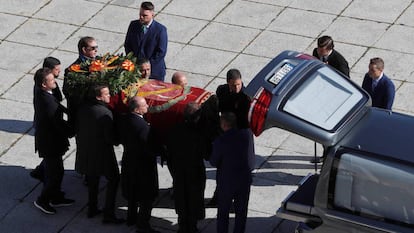 Los Franco habían exigido antes, incluso con recursos en el Tribunal Supremo, que al dictador se le dispensasen honores militares como jefe de Estado y que se cubriese su ataúd con “una bandera nacional”. La familia ha conservado durante estos años la bandera con el águila de san Juan con que fue enterrado en 1975 y que se consideró oficial desde 1945 hasta 1977, antes de promulgar la Constitución. Franco tomó prestado ese símbolo, con algunos cambios, de los Reyes Católicos, que lo adoptaron en el siglo XV. El bando sublevado de la Guerra Civil lo recuperó en 1938 y lo adoptó como emblema.