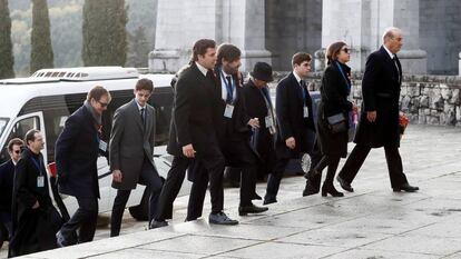 La familia Franco vivió este jueves un día de “enorme tristeza”, como lo definió casi antes de que comenzase la jornada histórica de la exhumación, al salir de su casa en Madrid, Francis Franco, el nieto varón mayor del dictador y XI marqués de Villaverde. Luego todo se fue complicando. Los 22 nietos y bisnietos de Franco no quisieron pasar inadvertidos en ningún momento y protagonizaron diversos incidentes, pero los que más les marcaron por su dureza fueron dos, uno en el interior de la basílica del Valle y otro dentro del panteón de Mingorrubio. En la carpa que protegía la anterior tumba de Franco, en Cuelgamuros, alguno de los familiares presentes rompió a llorar al escuchar el estruendo de las mazas y las radiales con las que los operarios levantaron la lápida de mármol y varias adyacentes para poder sacar el ataúd de la tumba. Costó mucho y se contabilizaron significativos destrozos, según fuentes de la familia y del Gobierno. El otro instante de gran tirantez fue cuando, ya en Mingorrubio, antes de oficiarse la misa final, un policía intentó registrar a Francis Franco para requisarle el móvil y evitar que grabase la escena, según las mismas fuentes. Hubo empujones y un conato de rebelión de los familiares.
