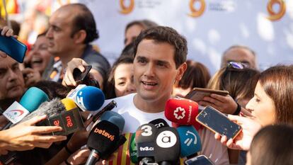 La encuesta del Centro de Investigaciones Sociológicas (CIS) publicada este martes mejora las previsiones para Ciudadanos sobre el promedio de encuestas privadas. El partido de Albert Rivera lograría, según este sondeo, un 10,6% de los votos en las elecciones del 10 de noviembre y una horquilla de entre 27 a 35 escaños. La mejoría es de algo más de un punto con respecto al promedio que elabora EL PAÍS (9,3%), y sitúa a Ciudadanos en empate a escaños con Unidas Podemos y por delante de Vox, algo que algunos sondeos han puesto en cuestión en las últimas semanas. El CIS, no obstante, también refleja problemas para el partido: los principales están en Cataluña y en las dos Castillas, donde retrocede de forma acusada. En la comunidad en la que nació, Cataluña, Ciudadanos podría perder más de la mitad de la representación.