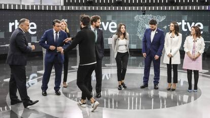 Para el final del debate quedó lo que, en resumen, es el meollo de la cuestión, lo que ha obligado a entrar de nuevo en la rueda de la campaña electoral: los pactos. Y no se resolvió en una hora aquello que tampoco se resolvió en los meses que pasaron entre las elecciones del 28 de abril y la convocatoria de esta nueva cita con las urnas. Llegado este momento, los portavoces de los siete partidos —PSOE, PP, Ciudadanos, Unidas Podemos, Vox, ERC y PNV— se mostraron relativamente cómodos con los tiempos y la conversación fluyó mejor, lo que no significó que fuera del todo clarificadora. Si las encuestas aciertan y, como cabría pensar, no hay mayorías claras tras un nuevo paso por las urnas, la situación arrancará desde el mismo punto en el que acabó en septiembre: en pleno bloqueo.