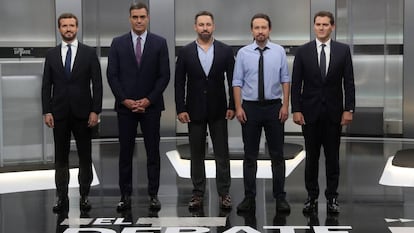 Áspero cara a cara entre los candidatos a La Moncloa de los grandes partidos en el único debate a cinco de las elecciones generales del 10-N. Pedro Sánchez (PSOE), Pablo Casado (PP), Albert Rivera (Cs), Pablo Iglesias (Podemos) y Santiago Abascal (Vox) han chocado en todos los campos, pero especialmente en cómo abordar el desafío independentista tras la sentencia del procés y la política de pactos, sin que se hayan vislumbrado salidas a la situación de bloqueo político. Sánchez ha salido en busca del voto de Cs,y ha endurecido el tono frente al independentismo, al plantear recuperar el delito de convocatoria de referendos ilegales. También ha anunciado una vicepresidencia económica para Nadia Calviño y la disolución de la Fundación Francisco Franco. Casado y Rivera se enfrentaron con dureza en su lucha por el voto de centro derecha, también en algún momento con Abascal, aunque defendieron sus pactos locales y autonómicos. Iglesias ha lanzado infructuosamente guiños al PSOE y ha insistido en una coalición, aunque ha dicho temer que Sánchez aproveche la situación en Cataluña para apoyarse en la derecha. Así le hemos contado en directo el debate. Si no puede verlo, pulse aquí.