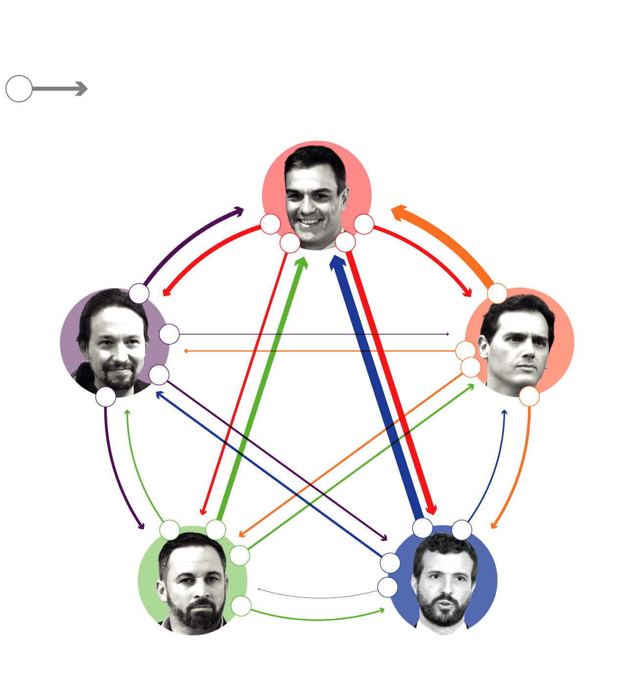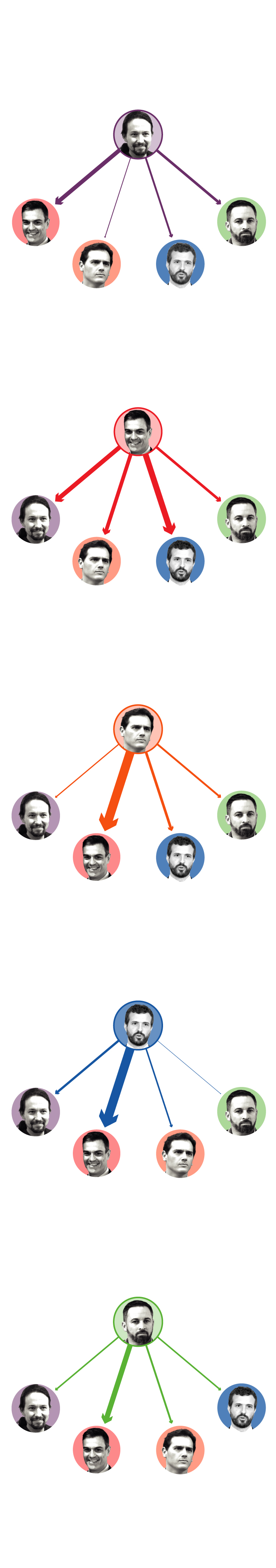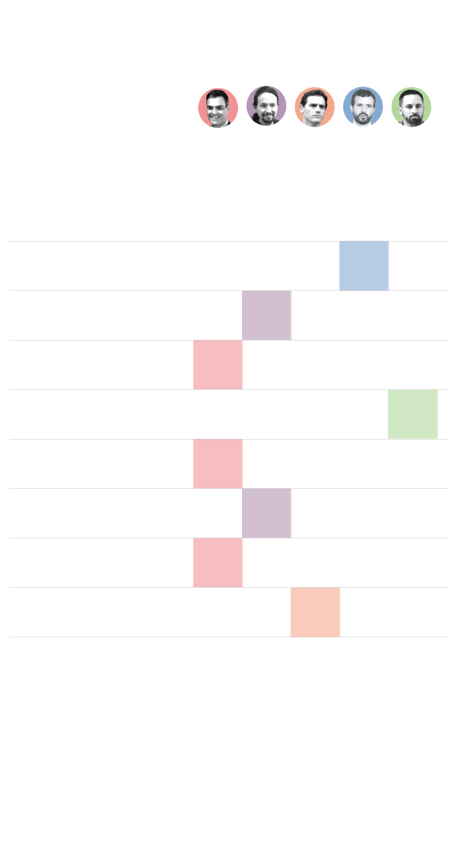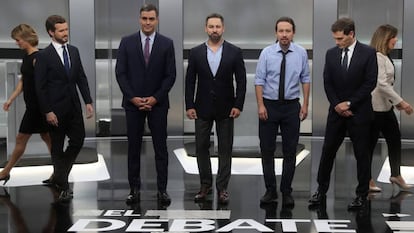 Las interpelaciones entre los protagonistas del debate, que eran cinco por primera vez, con la inclusión de Santiago Abascal, de Vox, son elocuentes.