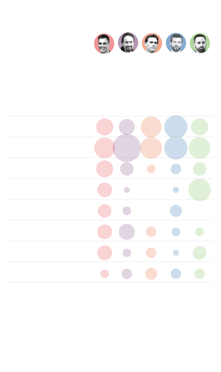 Alusiones de los candidatos a los siguientes temas