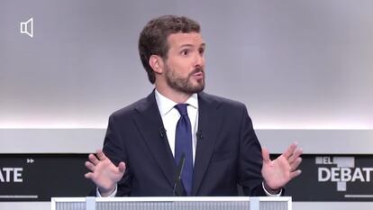 "Me gustaría estar en tu casa, mirarte a los ojos y darte la mano", arrancó Casado su minuto de oro. El líder del PP cerró el debate presentando a su formación como el partido del desbloqueo político y la única alternativa a Sánchez". Al salir del debate, declaró: "Me voy con la preocupación de no saber si Sánchez volvería a pactar con los partidos recién condenados por el Tribunal Supremo. Es inconcebible". En la sede de Génova, en Madrid, le esperaba con un largo aplauso la cúpula popular. El partido cree que el debate, que no fue el cara a cara que Casado hubiese preferido con el candidato socialista, ha servido para reforzar su papel de "única alternativa" al PSOE.