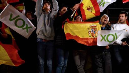 Fuera, cuando el 80% de los votos escrutados anunciaba que España ha votado como tercera fuerza política a un partido de extrema derecha e ideario racista, empieza a sonar la música. Para desgracia de Coque Malla suena No puedo vivir sin ti, que ya había sonado en Vistalegre provocando las quejas del artista. Suena Mil calles llevan hacia ti, de La Guardia. Y suena Libre, por supuesto, de Nino Bravo, porque el espíritu de la calle Bambú es de liberación; siguiendo su discurso, se han roto las cadenas que les oprimían en un reinado de terror progre según el cual históricas minorías eran depositarias de derechos que les igualaban a los demás. Esa noción de libertad y de aire fresco, precisamente la que falta en la democracia con su subida de votos, es la esgrimida por Vox para asentarse en el imaginario de sus seguidores como el único partido que dice la verdad en una especie de 1984 diseñado contra ellos. No es más apasionante que alguien articule semejante discurso como que millones le crean y hagan bandera con él.