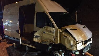 “Ha venido lanzado desde la aduana de Marruecos. Ha reventado sus puertas, las de la Policía Nacional y las nuestras”, explica un agente de la Guardia Civil. El suceso ha ocurrido a las 2.15, justo cuando el paso estaba interrumpido al ser de noche y mientras un fuerte temporal de lluvia y viento azotaba a la ciudad autónoma. Tras recorrer los 400 metros que separan la zona marroquí de la española, la furgoneta blanca ha destrozado las cancelas nuevas que el pasado 17 de octubre se instalaron justo a la altura del control de la policía.