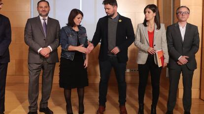 La terminología es clave por la enorme sensibilidad que hay a ambos lados, pero en especial en el mundo independentista. ERC debe tomar la arriesgada decisión de votar de forma diferente a su socio de Gobierno y gran rival en el liderazgo del independentismo, JuntsxCat, liderado desde Bruselas por Carles Puigdemont. Ya lo hizo en julio, cuando Esquerra se abstuvo y Junts votó en contra. Pero ahora, después de la sentencia del procés, el camino es más complejo. Además, hay distintas sensibilidades en ERC y los socialistas querían ver en directo cómo respiraban los dos negociadores más duros, Josep Maria Jové, considerado el cerebro de la consulta del 1-O, y Marta Vilalta, adjunta a la secretaría general. Aun con los halcones en la mesa, la sensación es que hay margen. “Hay voluntad de diálogo” entre ambas formaciones porque, de no haber sido así, “nos hubiéramos levantado de la mesa”, explicó en TV3 la propia Vilalta. “Ellos trabajan con un calendario más acelerado y nosotros les dijimos en la reunión que no teníamos ninguna prisa, que no viene de unos días”, remachó.