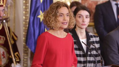 Las presidentas de las Cortes, Meritxell Batet y Pilar Llop, ya están recibiendo a los invitados a la recepción en el Congreso.