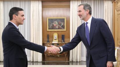 El Rey ha encargado este miércoles a Pedro Sánchez que busque los apoyos para una investidura que aún no tiene fecha. El presidente en funciones, que ganó las elecciones y es el único en condiciones de formar una mayoría, transmitió a Felipe VI que cree que podrá lograr los votos necesarios y el jefe del Estado actuó en consecuencia. Sánchez, sin embargo, no tiene aún cerrados esos apoyos. Le falta sobre todo la abstención de ERC. Para lograrla, Sánchez dio un paso inesperado: anunció que hablará con “todos los presidentes autonómicos”, esto es, retomará el diálogo con Quim Torra, algo que reclaman los independentistas.