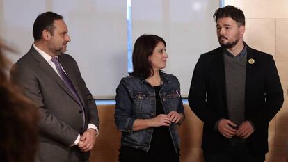 La negociación se acelera de nuevo, después de una semana de un relativo parón, aunque los contactos informales seguían, sobre todo entre Adriana Lastra y Gabriel Rufián. Los socialistas siguen trabajando con el objetivo de lograr una investidura antes de Reyes, el día 5. Pero nadie está en condiciones de garantizar nada porque cada día aparecen elementos externos que complican todo. El último ha sido la Junta Electoral Central, que ha decidido reunirse el próximo viernes, en pleno momento cumbre —si todo sale bien se estaría produciendo la primera votación de la investidura— para decidir si inhabilita a Quim Torra, algo que podría precipitar nada menos que un adelanto electoral en Cataluña.