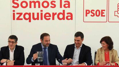 No habrá referéndum de autodeterminación en Cataluña. El PSOE ha negado de manera tajante que la consulta a la "ciudadanía de Cataluña" de los acuerdos potenciales a los que se pueda llegar en la mesa bilateral entre el Gobierno y la Generalitat acordada con ERC abra la puerta a una consulta legal sobre la relación de la comunidad autónoma con el resto de España. "Una consulta no es un referéndum de autodeterminación. Nosotros no apoyamos una consulta por la independencia", ha zanjado José Luis Ábalos. El secretario de Organización de los socialistas y ministro de Fomento en funciones ha recalcado que están "dispuestos a debatir cualquier iniciativa" y "conocer las razones" que defiende ERC —cuya abstención era clave para el éxito de la investidura de Pedro Sánchez, que no ha comparecido tras la ejecutiva—, "pero eso no significa compartirlas". El PSOE defende un modelo federal como solución a la crisis territorial y un nuevo estatuto de autonomía para Cataluña.