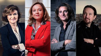 El incremento del número de vicepresidencias —en la investidura se daba por hecho que habría tres— diluye el papel de Pablo Iglesias. Fuentes de Podemos descartan entrar a valorar esta decisión del presidente, pero el malestar en su entorno es evidente. De la vicepresidencia de Iglesias dependerán dos áreas: Derechos Sociales y Agenda 2030, que reúne los objetivos de Naciones Unidas para el desarrollo sostenible, con especial incidencia en la lucha contra la pobreza y contra la emergencia climática. La nueva vicepresidencia de Transición Ecológica sitúa a Iglesias y a Ribera en el mismo nivel jerárquico.