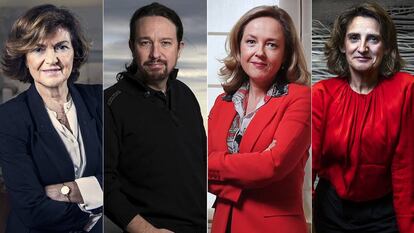 La vicepresidenta primera tendrá por delante la complicada labor de coordinar a todos los ministerios en el segundo Gobierno con más carteras desde la restauración de la democracia. También, dirigirá el Consejo de Ministros cuando Sánchez se ausente y encabezará las relaciones con la Generalitat en esta nueva etapa que se abre con la mesa de diálogo. En Memoria Histórica, superado el reto de sacar los restos de Franco del Valle de los Caídos, el Gobierno tiene pendiente la exhumación de los republicanos enterrados en el mausoleo. También el traslado de los restos de Primo de Rivera del lugar preeminente donde se encuentran ahora. A más largo plazo, el reto es resignificar el monumento para convertirlo en un lugar de memoria. También deberá desarrollar el compromiso adquirido en la legislatura anterior de elaborar un plan nacional de búsqueda de los desaparecidos del franquismo que aún yacen en fosas y cunetas. El Ejecutivo pretende resolver dos de las grandes críticas de las asociaciones de víctimas a la ley de memoria histórica del Gobierno de Zapatero, que subvencionaba las exhumaciones pero las dejaba en manos de familiares y declaraba ilegítimos los tribunales franquistas pero no anulaba directamente las condenas que habían impuesto. El Gobierno de coalición también se ha propuesto auditar los bienes incautados por el franquismo para devolvérselos a sus dueños. / C. E. CUÉ / N. JUNQUERA