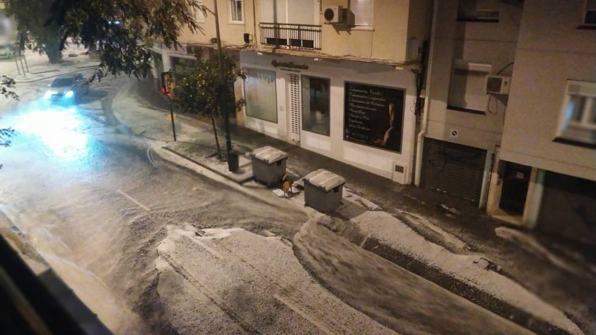 Una tremenda granizada ha cubierto de blanco Málaga este jueves por la mañana. Entre las seis media y las siete de la mañana han caído granizos del tamaño de una canica durante varios minutos en la zona centro y este de la capital, ofreciendo una excepcional estampa blanca en las calles malagueñas. Especialmente en calle Larios, la plaza de La Merced o el paseo marítimo Pablo Ruiz Picasso, convertidos en pistas de patinaje. Llegar al trabajo por la mañana se ha convertido en una auténtica aventura para miles de malagueñas y malagueños.