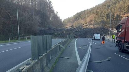 El desprendimiento colapsa la autopista entre Bilbao y San Sebastián