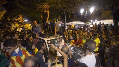 Aunque sus mayores problemas comenzaron al acabar el registro. Pasadas las nueve y media de la noche avisó a los agentes de que se prepararan para salir. “Pero tenían caras de que no iba a poder ser”, ha afirmado, antes de contar cómo se dio cuenta de la complejidad de la situación. En ese momento, subió a una azotea en busca de un guardia civil para que le firmara un documento y vio cómo estaba la calle. “Comprendí que estábamos perdidos. O salíamos por el aire o no salíamos”.
