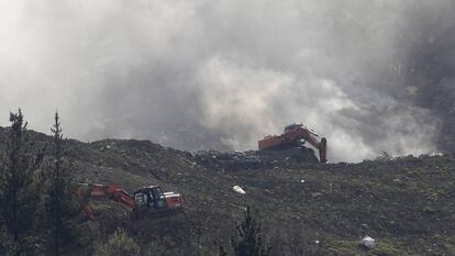 El temor se ha extendido por la comarca, donde abundan poblaciones en valles rodeadas por peñas de distinta altitud. Las mediciones de calidad del aire y del agua han mostrado por ahora la ausencia de riesgo para la salud, pero no han podido contener los recelos de los vecinos. Tampoco ayuda el humo que siguen emitiendo varios puntos del derrumbe, como cráteres de un volcán de basura que impregna la zona de olor a plástico quemado.