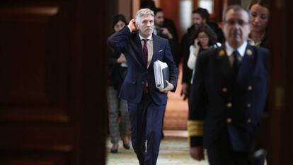El ministro del Interior sí reiteró, como ya comentó la semana pasada en el Senado, que será derogada la llamada ley mordaza, en la que el PP introdujo una disposición adicional para legalizar las devoluciones en caliente cuando la aprobó, en 2015. Marlaska anunció una nueva Ley de Seguridad Ciudadana para sustituirla. Hasta ahora, el PSOE había planteado una reforma de los artículos más polémicos —los que llevó, junto a otros grupos parlamentarios, al Tribunal Constitucional tras ser aprobada por el Gobierno de Rajoy—, pero ahora habla de hacer una nueva partiendo de cero. El ministro ya había suavizado la polémica ley mordaza dando instrucciones a Policía Nacional y Guardia Civil para racionalizar su aplicación. No obstante, en la nueva norma no estarán, como ya anunció en su día el grupo socialista, las devoluciones en caliente. El plan es que estas queden reguladas en una futura nueva Ley de Extranjería, a la que, sin embargo, no hizo alusión el ministro durante su intervención en el Congreso.