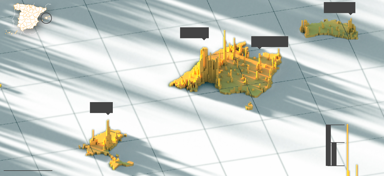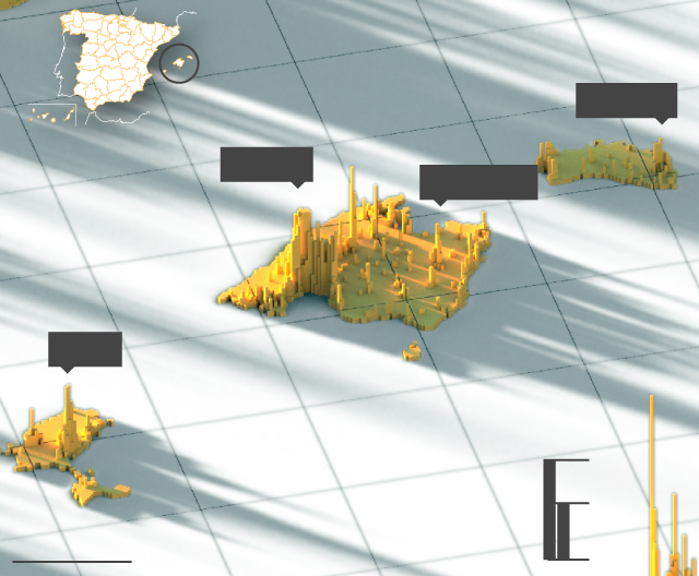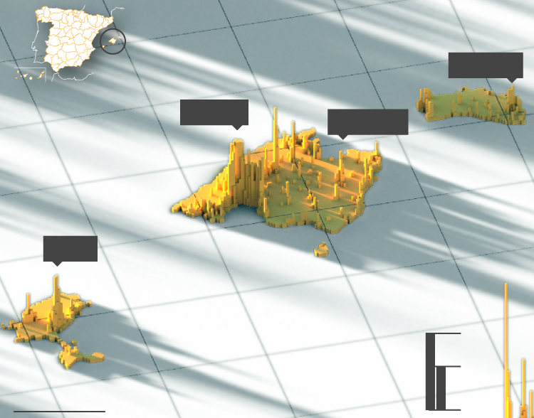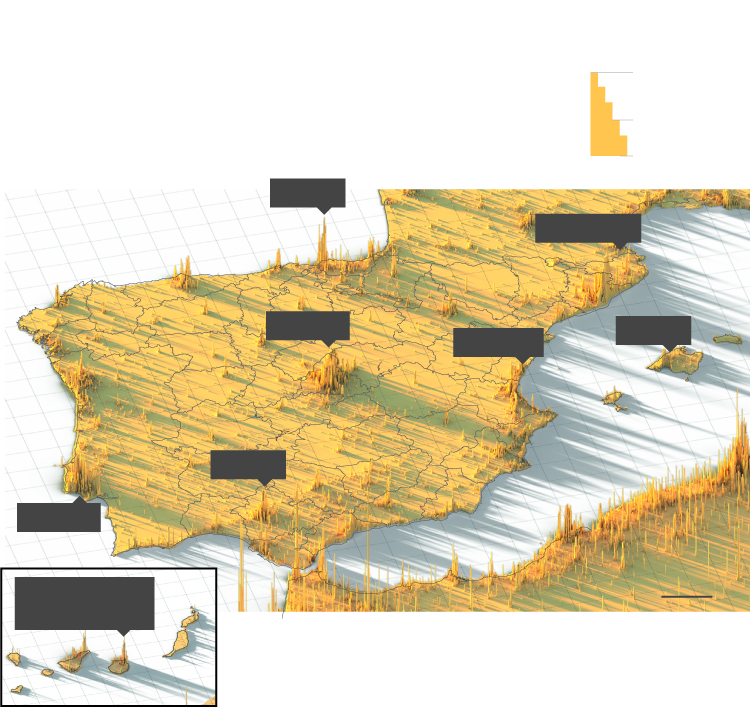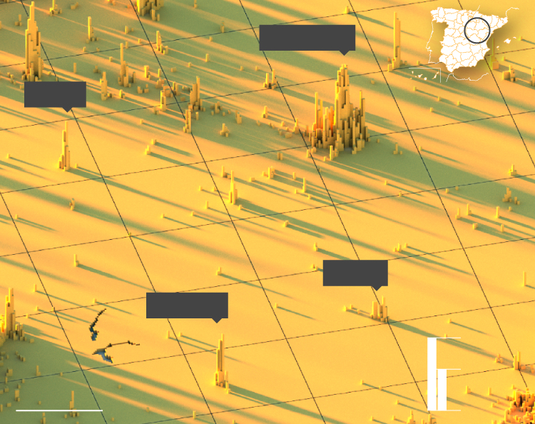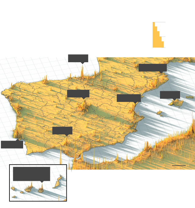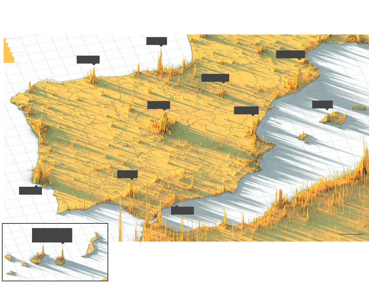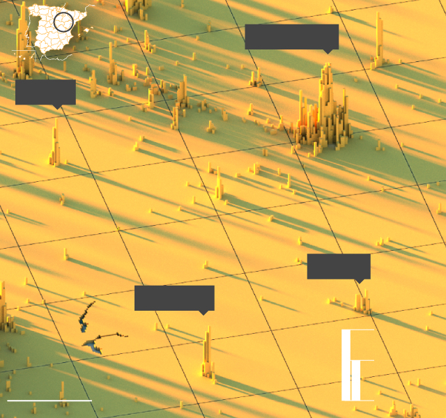 Una visualización con 'rascacielos' de personas muestra el enorme desequilibrio de población entre los diferentes territorios de la península Ibérica
