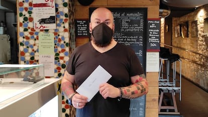 Un cliente de Bilbao deja al propietario de un establecimiento, que estará cerrado noviembre por la covid-19, un sobre con dinero para pagarle las consumiciones de todo el mes